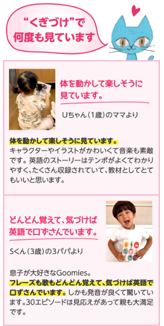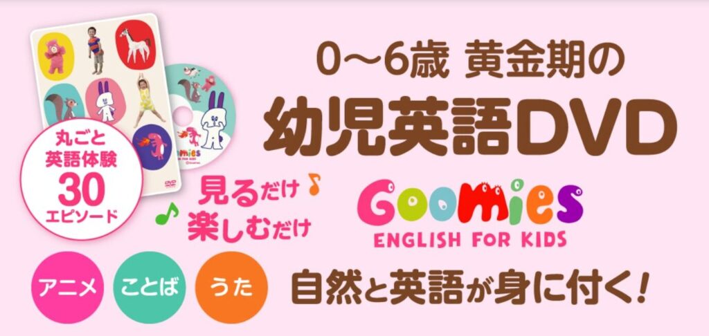 幼児英語DVD【Goomies】は「見るだけ、楽しむだけ」をテーマにした、自然に英語の力を養える教材です。